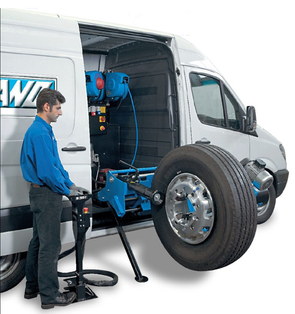 konstrukcja umożliwia obsługę koła poza pojazdem bezpotrzeby wyjmowania montażownicy z przestrzeni ładunkowej pojazdu serwisowego