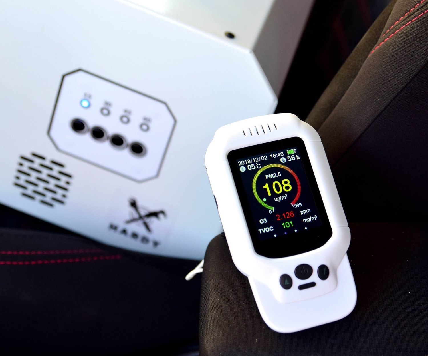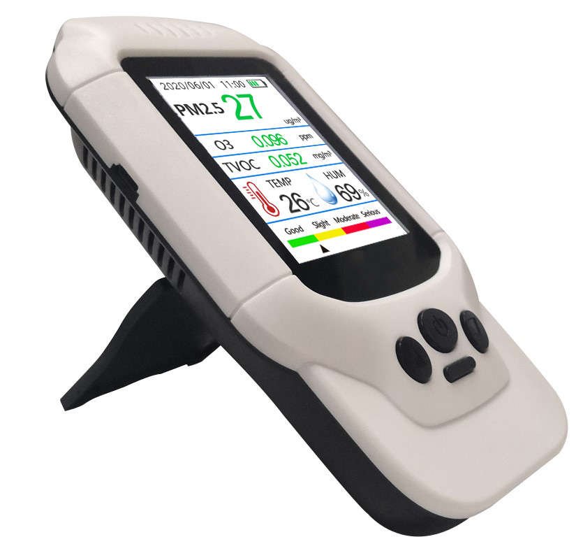Laserowy czujnik pyłu zawieszonego w powietrzu mierzy ilość pyłów PM1, PM2.5, PM10, stężenie ozonu, lotne związki organiczne