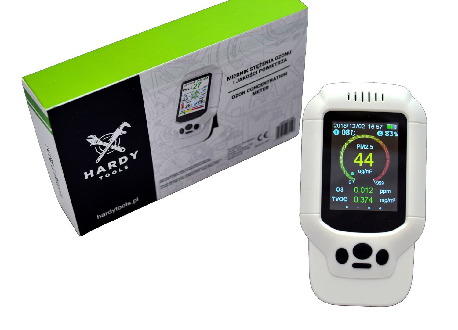 Miernik stężenia ozonu i jakości powietrza, idealny do pomiarów wewnętrznych i zewnętrznych - dodatkowo do pomiaru temperatury i wilgotności oraz TVOC. Wyposażony w wewnętrzny wentylator zasysający powietrze do czujnika. Może być stosowany do wykrywania pozostałości ozonu po dezynfekcji lub w trakcie. Dobry do 24 godzinnego monitoringu w czasie rzeczywistym. Możliwość rejestracji i zapisywania historycznych pomiarów. Instrukcja i menu w języku polskim. idealny do pomiarów jakości powietrza w domu i w firmie.