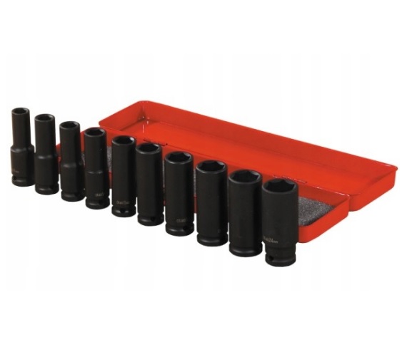 W zestawie znajdują się nasadki w rozmiarach: 11, 12, 13, 14, 15, 17, 19, 21, 22, 24 [mm].