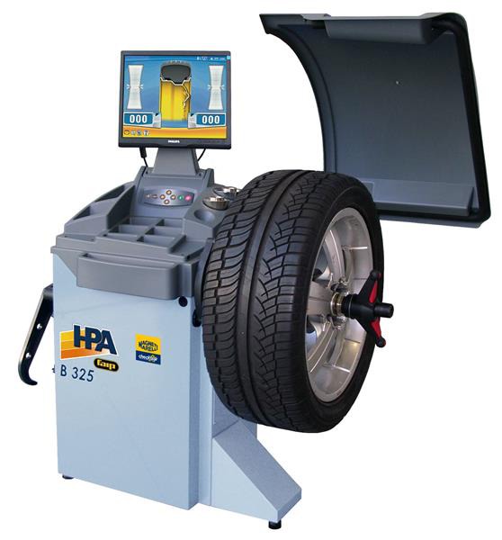 B 325 A - Mikroprocesorowa wyważarka - automatyczny start, automatyczne wyszukiwanie pozycji niewyważenia, pokrywa ochronna w zestawie. 40 mm Ø