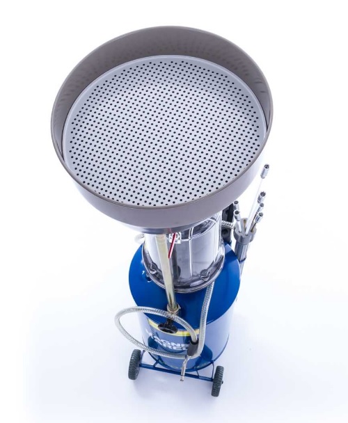 Odsysarko-zlewarka MM-OD02 wyposażona w zbiornik z pomiarem oleju o pojemności 70L. Nasz produkt to podciśnieniowe urządzenie ssące działające na zasadzie pneumatycznego pobierania oleju z układów podlegających wymianie oleju. Składa się z umieszczonego na podwoziu kołowym zbiornika ze stali lakierowanej o pojemności 80 litrów, rury wlotowej, grupy sond (6 sztuk), rury wylotowej.