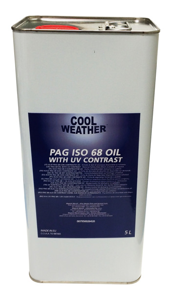 Olej PAG 68 z kontrastem UV o pojemności 5L to produkt o wysokiej jakości pozwalający na stosowanie w układach klimatyzacji z czynnikiem R134a.