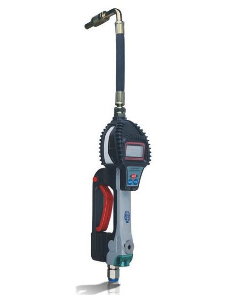 Pistolet do napełnienia oleju z pomiarem elektronicznym, pamięcią i automatycznym zaworem, obrotowa sonda z mechanizmem zapobiegającym kapaniu. Parametry techniczne: