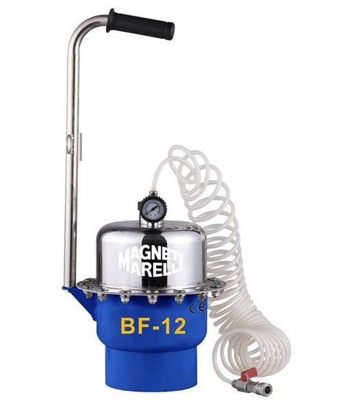 Składa się ze zbiornika ze stali nierdzewnej, wewnątrz którego porusza się membrana z gumy, która wypycha olej, z rury spiralnej z uchwytem i kurkiem, z lejka do wprowadzenia oleju i manometru kontroli ciśnienia. Maszyna, która po zwiększeniu ciśnienia ma funkcjonowanie autonomiczne, jest przeznaczona do czyszczenia hamulców samochodów osobowych i ciężarowych. Każde zastosowanie inne od podanego uważa się za niewłaściwe i nierozsądne. Producent nie przyjmuje odpowiedzialności za zastosowania inne od wskazanego.