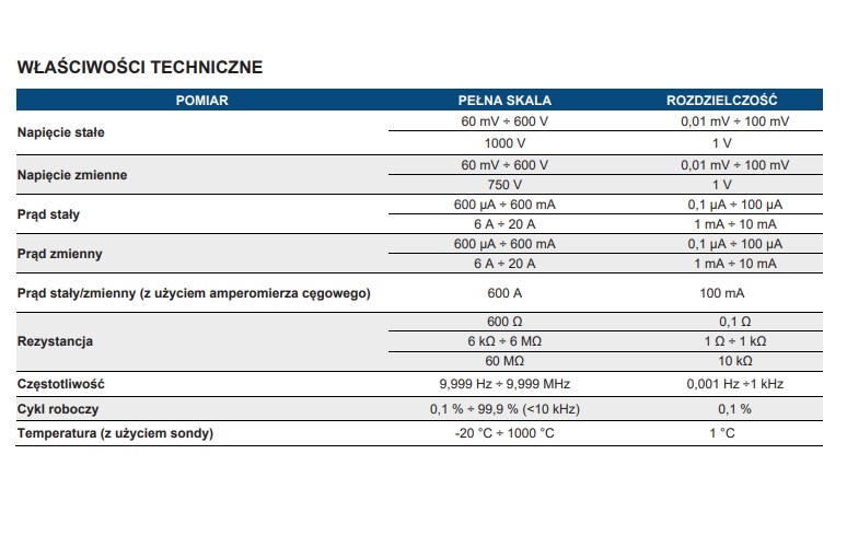 | POMIAR | PEŁNA SKALA | ROZDZIELCZOŚĆ |