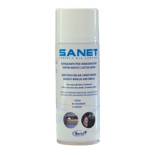 Gdy klimatyzator jest używany, grzyby, bakterie oraz inne makroorganizmy rozprzestrzeniają się w przestrzeni pasażerskiej poprzez system wentylacyjny. SANET spray został specjalnie zaprojektowany by eliminować bakterie, grzyby oraz mikroorganizmy kumulujące się na szybach, tapicerce i obiektach pasażera. Jego niezwykła moc odkażania łączy się z przyjemnym zapachem, który pozostawia natychmiastowe uczucie czystości, eliminując również brzydkie zapachy spowodowane przez dym papierosowy itp.