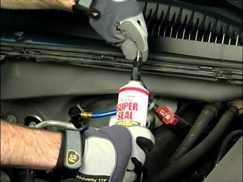 Przy wyłączonej klimatyzacji, zamień na produkt Super Seal, podłącz ponownie do tego samego portu low-side, trzymając puszkę prawą stroną do góry, obracaj uchwytem węża do ładowania zgodnie z ruchem wskazówek zegara, aż trzpień przekłuwa puszkę . Przekręć uchwyt w kierunku przeciwnym do ruchu wskazówek zegara, aż usłyszysz, jak czynnik chłodniczy przemieszcza się z układu klimatyzacji do kanistra.
