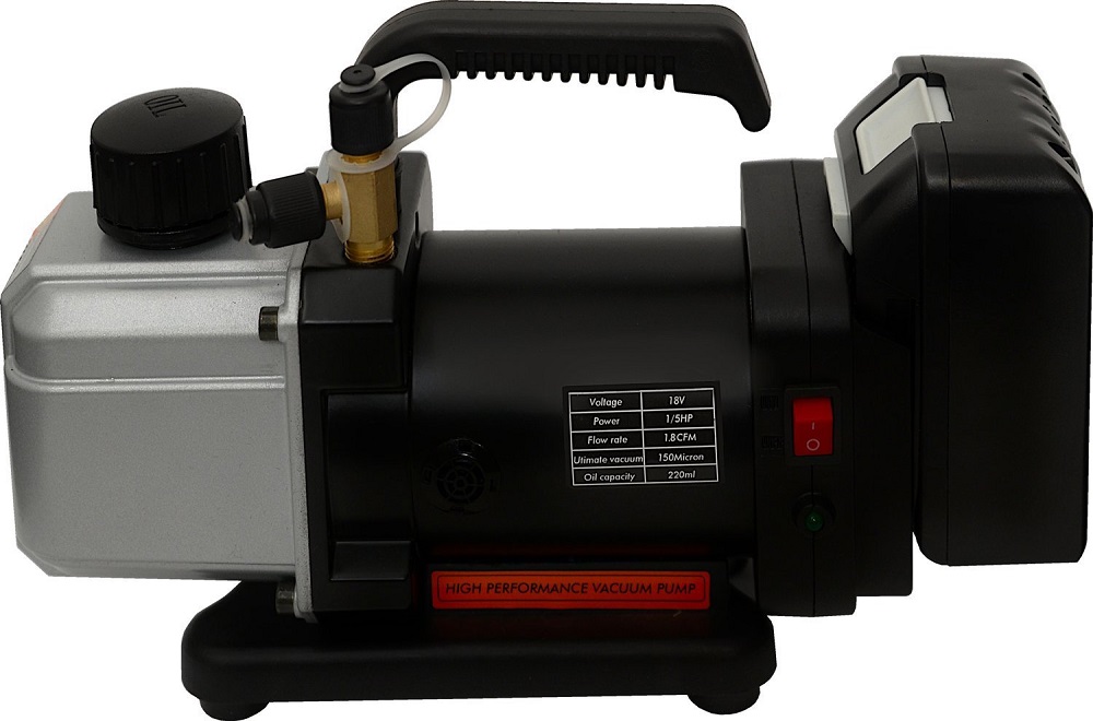 Akumulatorowa pompa próżniowa stosowana jest w klimatyzacji i chłodnictwie, bo cechuje się wysoką niezawodnością, zwartą budową, oraz lekką konstrukcją (2,7kg - bez baterii) umożliwiającą wygodne przenoszenie pompy do miejsca pracy. Jednostopniowa pompą próżniowa pozwala na uzyskanie poziomu próżni rzędu 99,99% co przekłada się na głębokość próżni równe 75 mikronów.