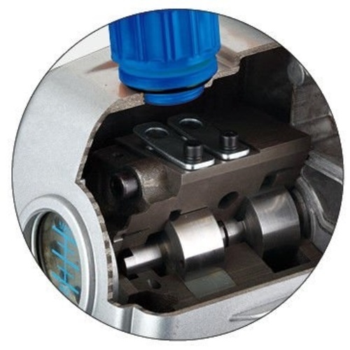 Jej główne zalety to solidna aluminiowa obudowa oraz praktyczny zbiornik na olej. Wbudowany wziernik pozwala na kontrolę poziomu, jak i jakości oleju. Wbudowana rączka ułatwi transport.
