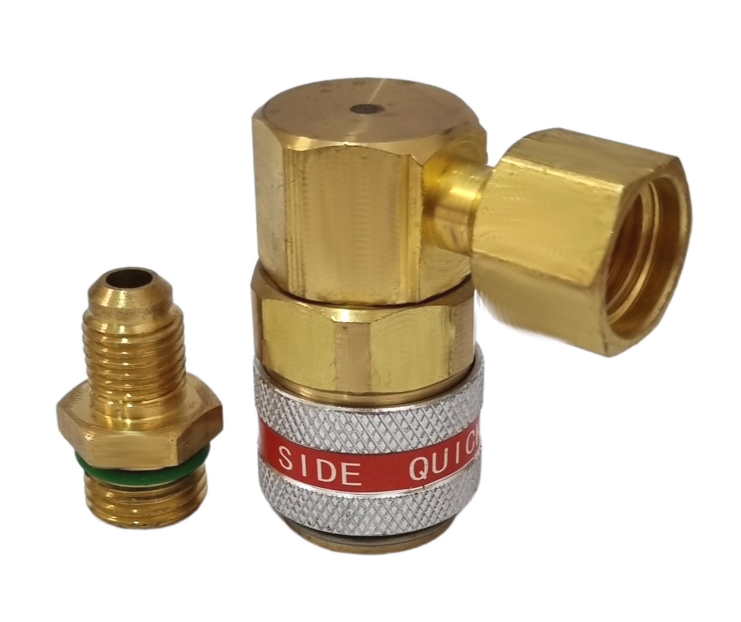 Do szybkozłaczki dołączony jest adapter z gwintem męskim umożliwiający umożliwiający podłączenie się do przewodów na 1/4SAE (7/16")
