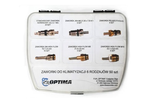Zaworki do klimatyzacji 6 rodzajów 50 szt.niezbędne w każdym warsztacie zajmującym się obsługą klimatyzacji.