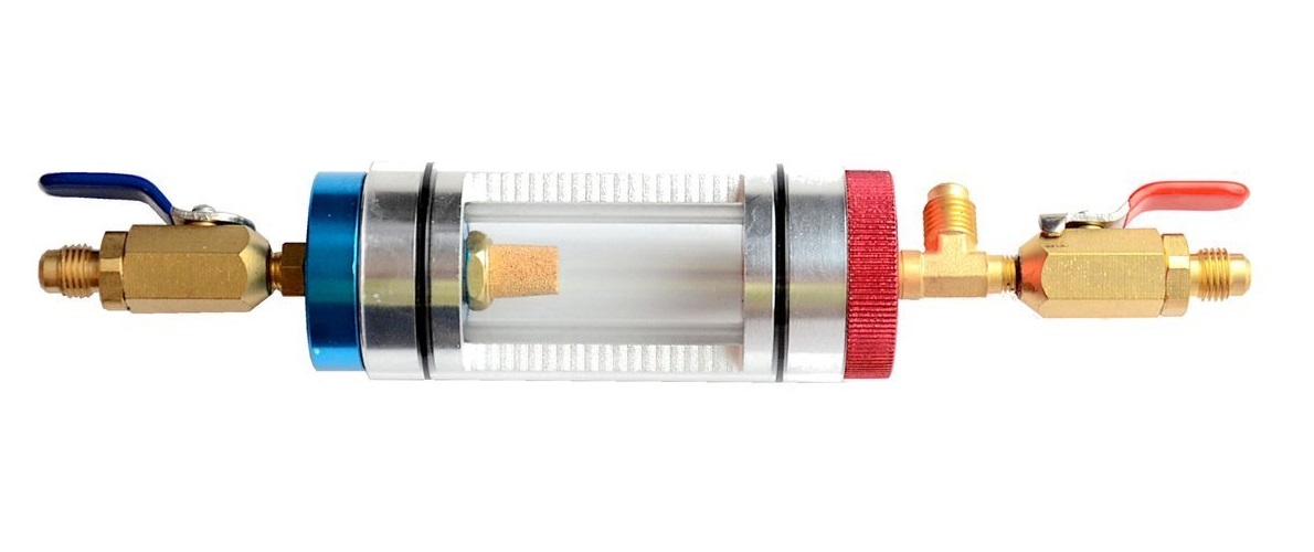 Szklany cylinder do obserwacji czynnika z zaworami kulowymi